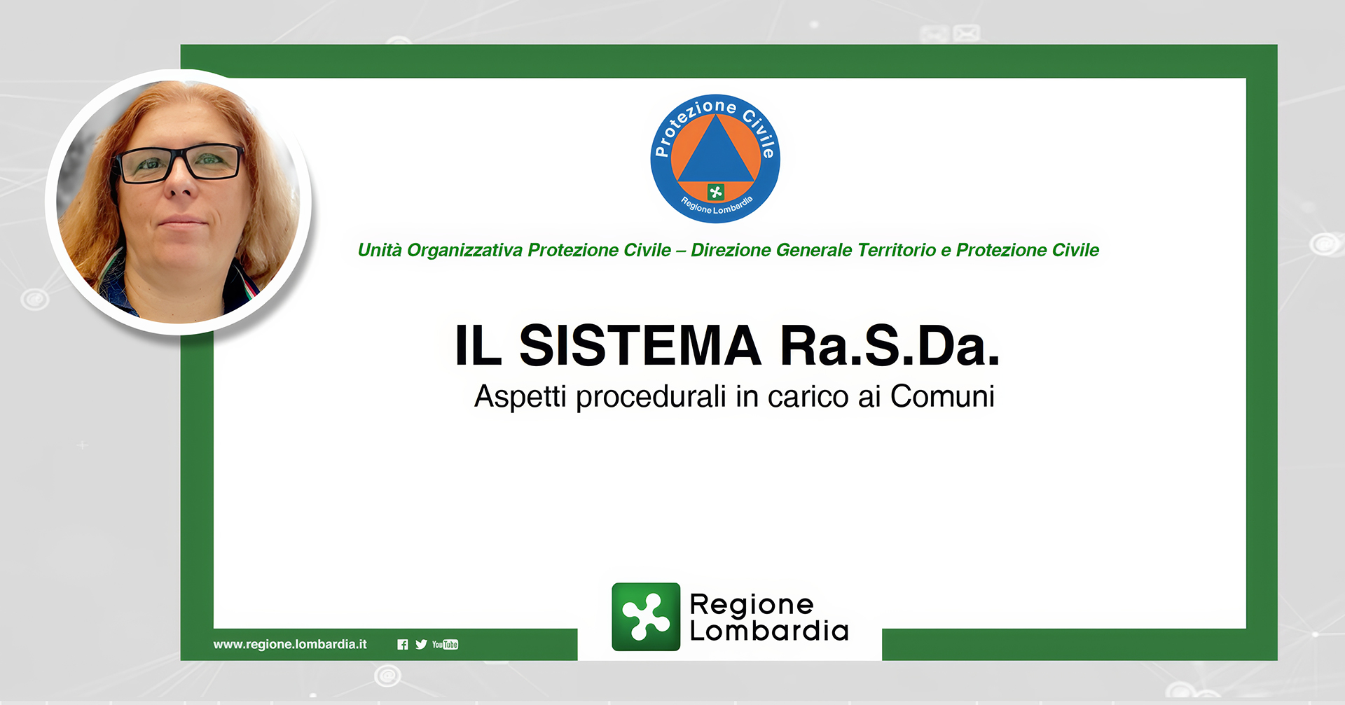 The training program consists of a series of tutorials dedicated to the Ra.S.Da. system (Damage Collection Form), which enables local authorities to report damages to both public and private sectors to the Region, along with first emergency expenses resulting from natural calamitous events. The data collection procedure is essential when calamitous events occur.